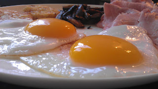 - Ate in a timely manner before going to the gym. Hopefully this means I won't hurt too much tomorrow. Fried eggs with lean ham and rosti. Mmmmm. Om nom nom.